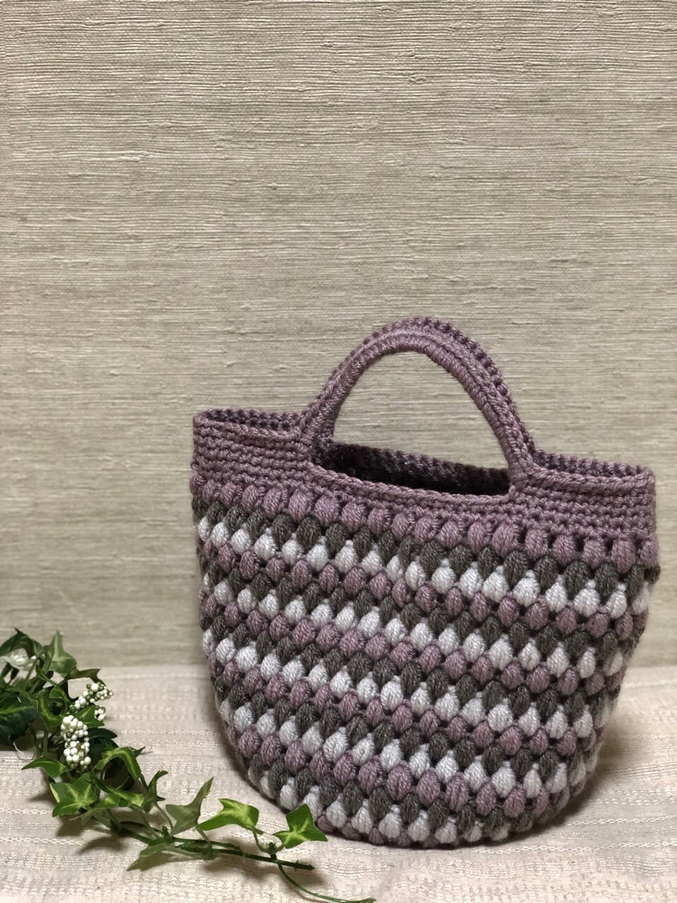 メランジミニバッグ❃玉編み❃3色ボーダー