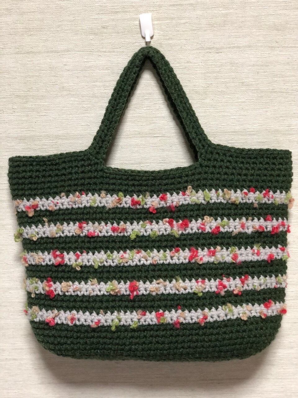 お花のようなネップの入った糸で作ったボーダー柄バッグ!