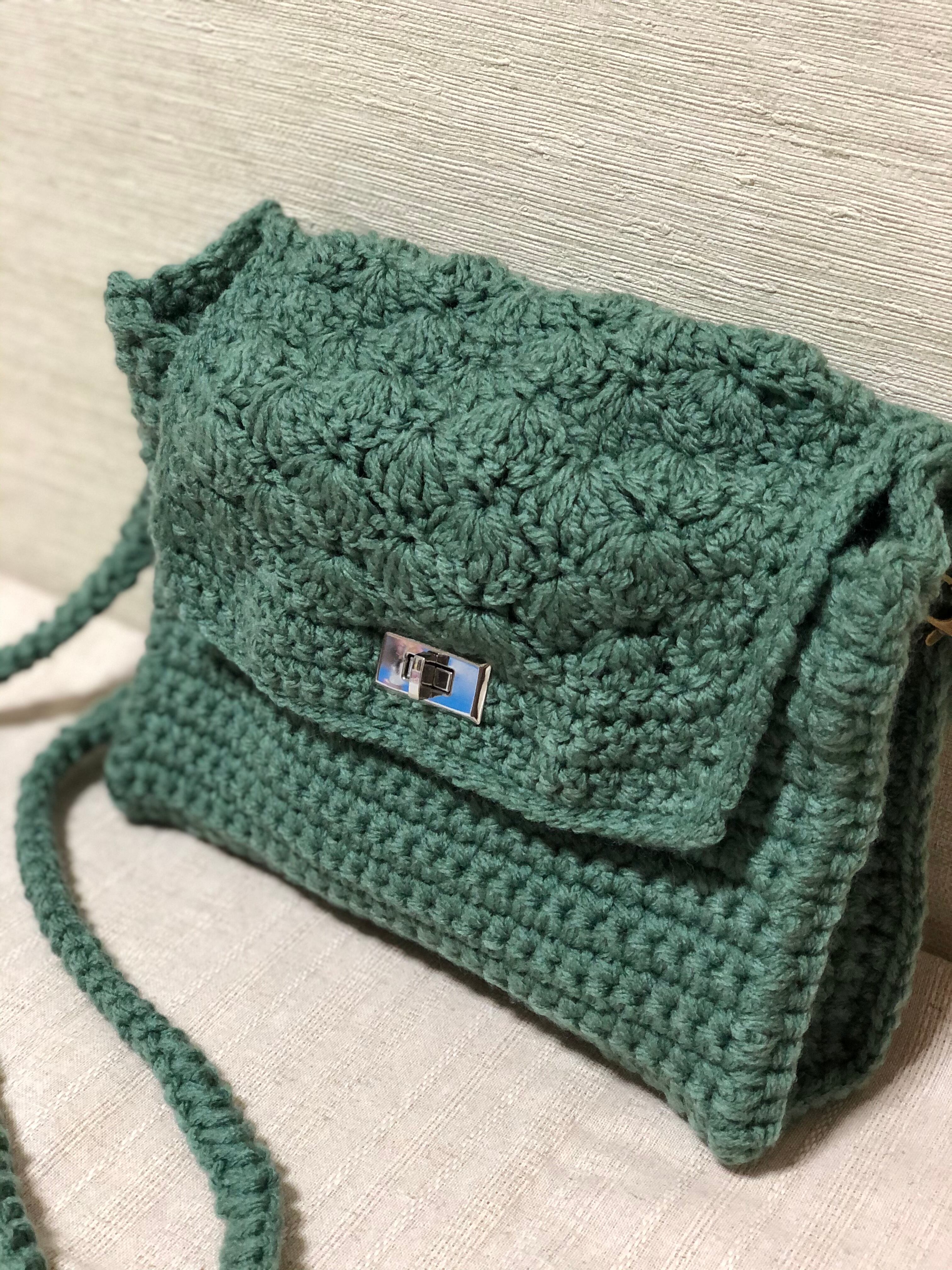 落ち着いたグリーンで、ひねり金具をつけてショルダーバッグにしました!